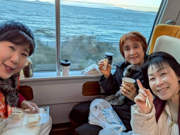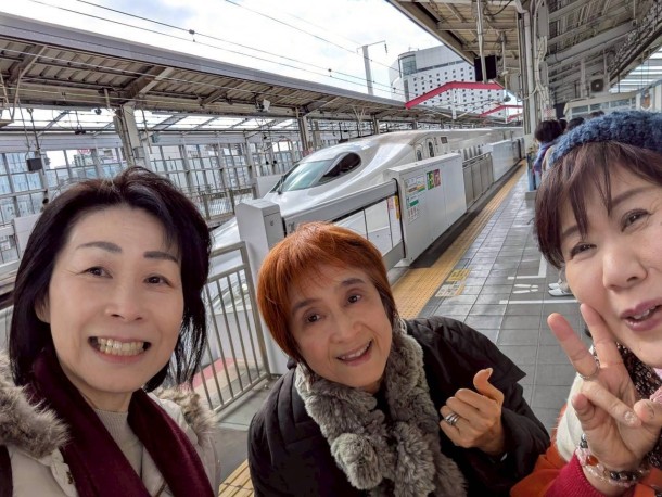 美奈ちゃんの車で行くことになってましたが、これは危ないと、急遽JRと新幹線で行くことに。