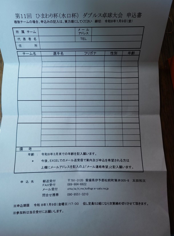 定員になり次第締め切りますと書かれてあるので、12月26日金曜日までにお願いします。