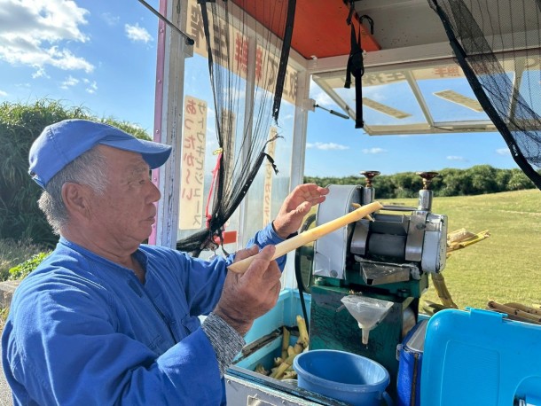 さとうきびの棒みたいなものがこんなフレッシュ生ジュースに。